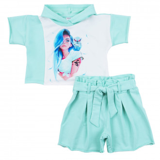 - Блузата е в син цвят в комбинация с бяло и щампирана картинка отпред.