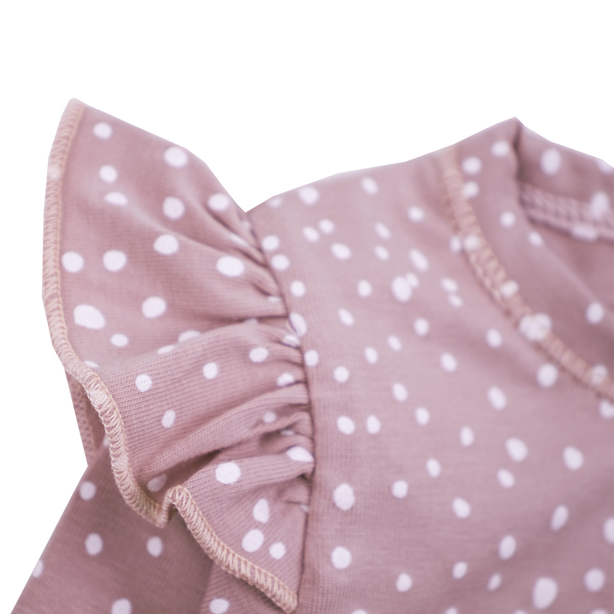 - Цвят: опушено розов, обсипан в щампирани точки.