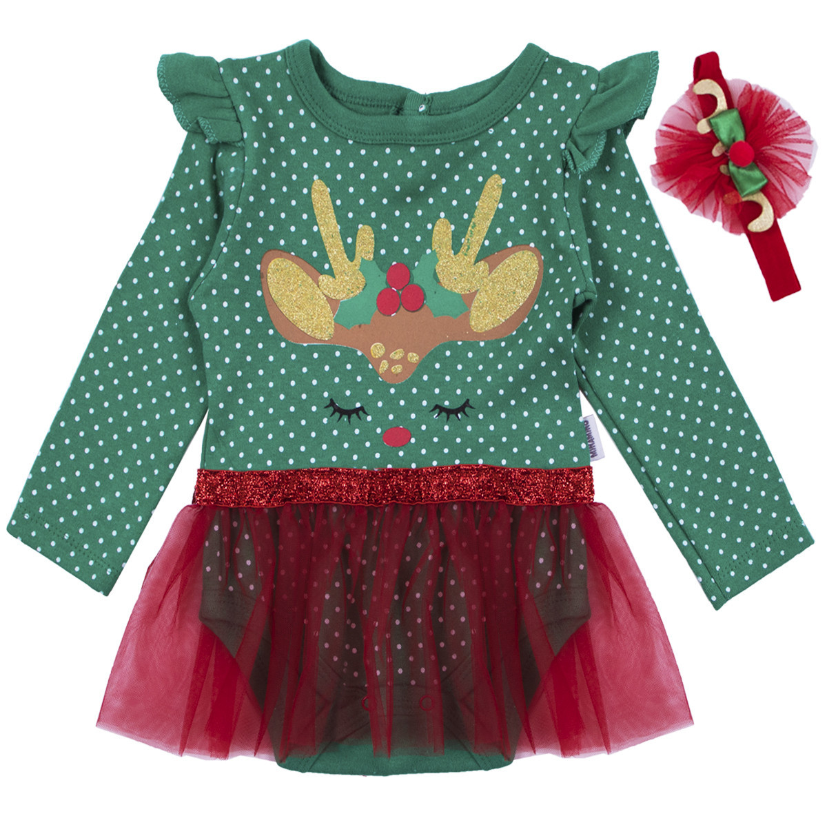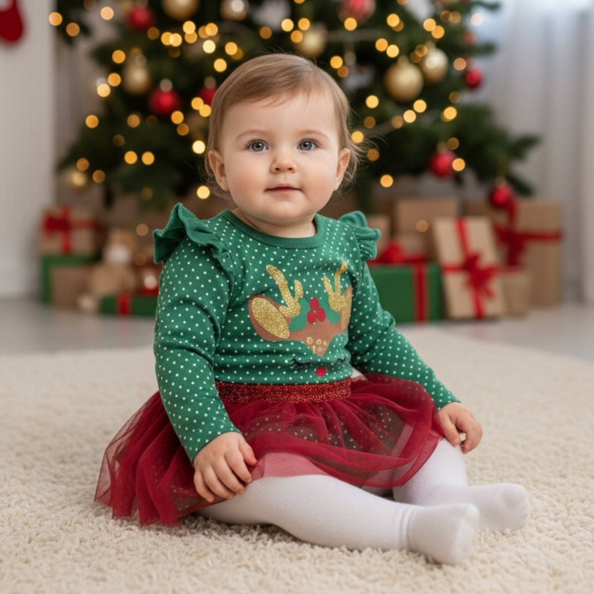 - Обсипана е щампирани точки и картинка на еленче украсено със златист брокат.