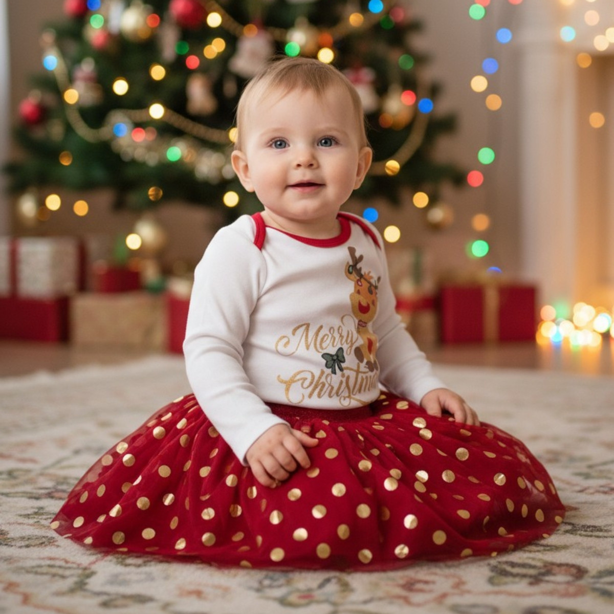Коледен комплект от боди и поличка в червено и бяло