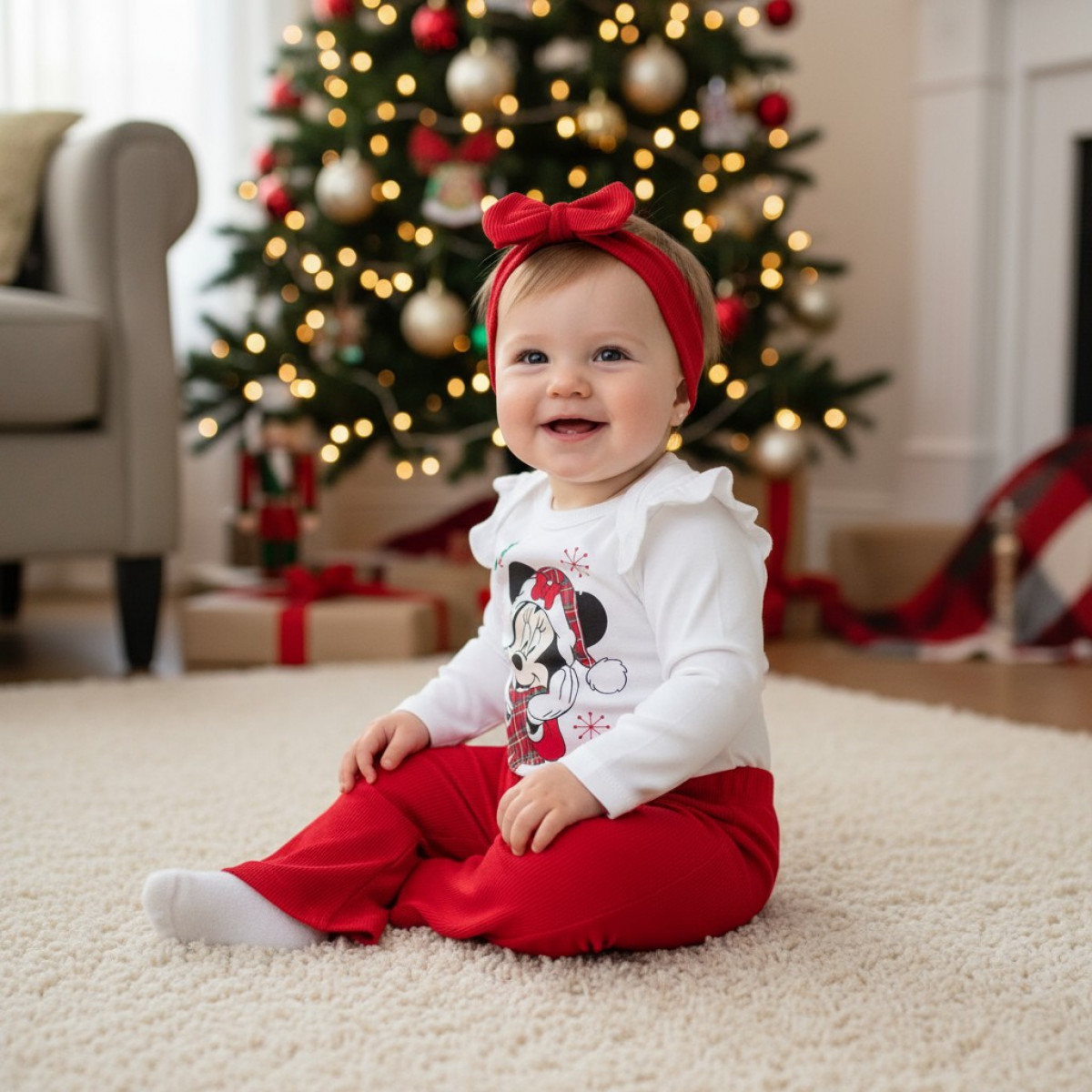 - Комплектът се състои от: боди с дълъг ръкав, панталонче и лента за глава.