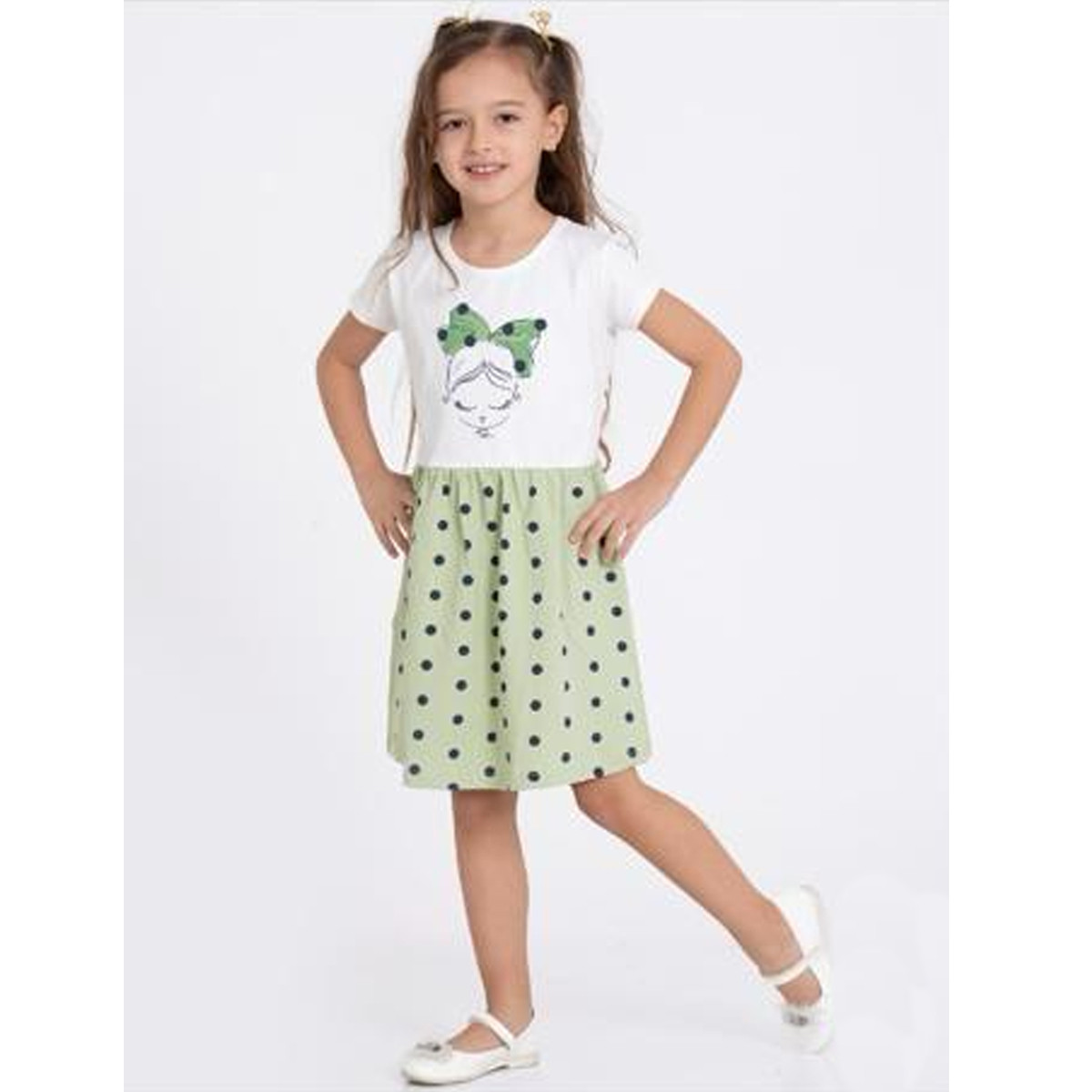 Лятна трикотажна рокля "Art girl" в бяло и зелено