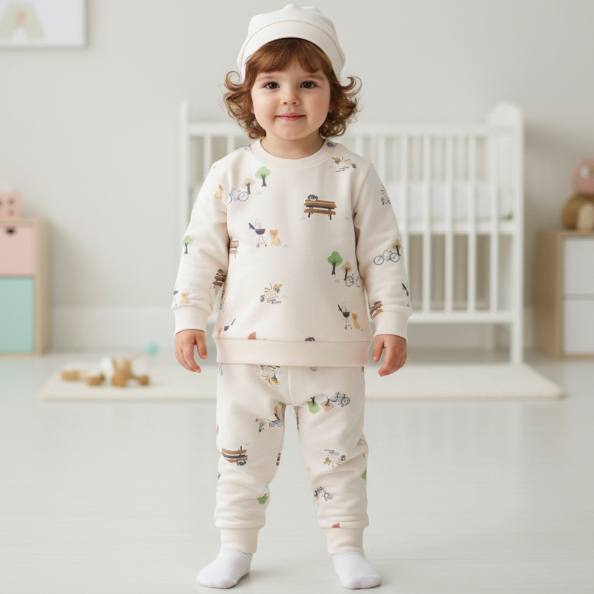 - Шапка също е в бежов цвят.