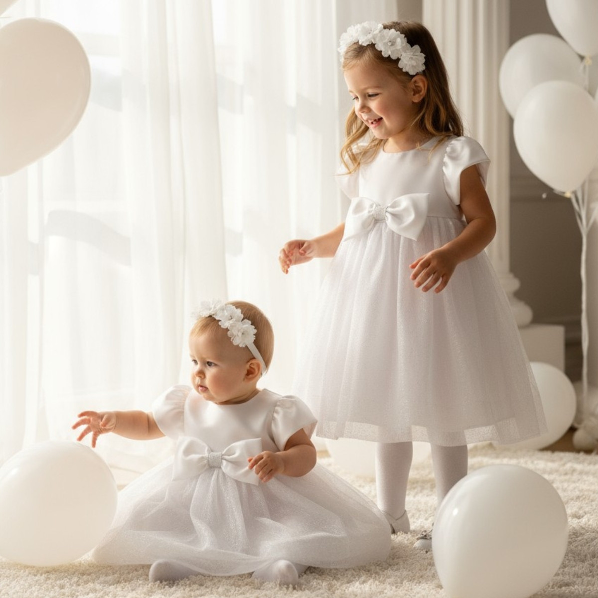 - Изработена е от бял сатен и ефектен тюл.