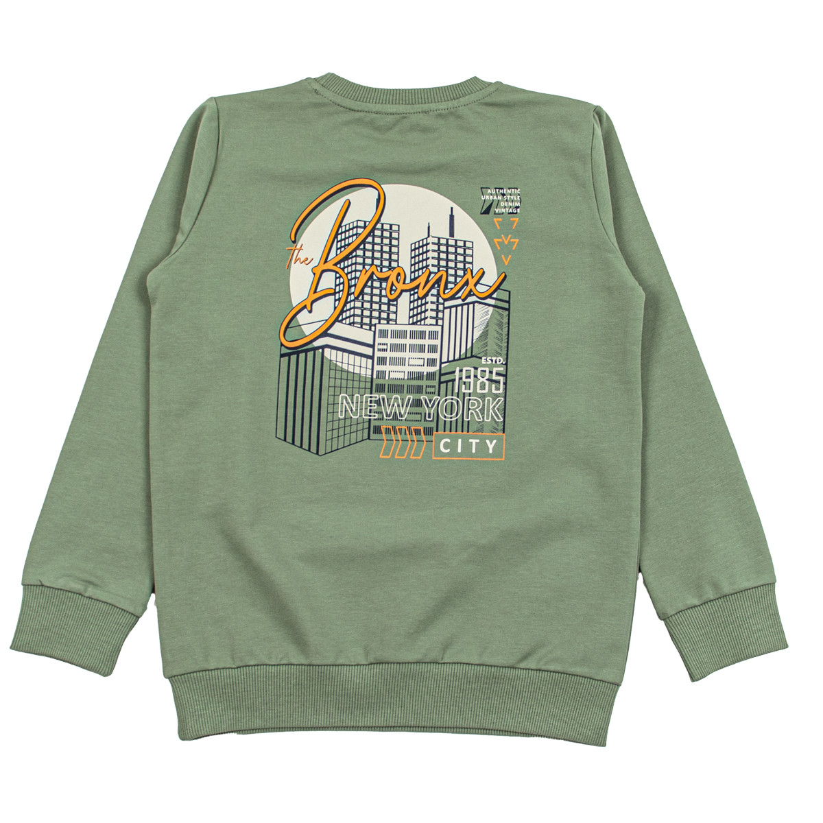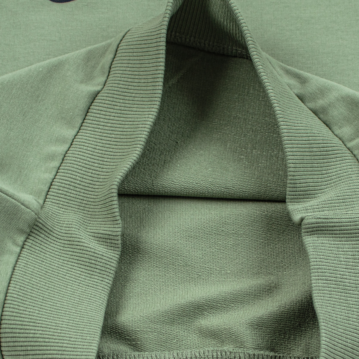 - Блузата е в зелено с щампирани апликации отпред и на гърба.