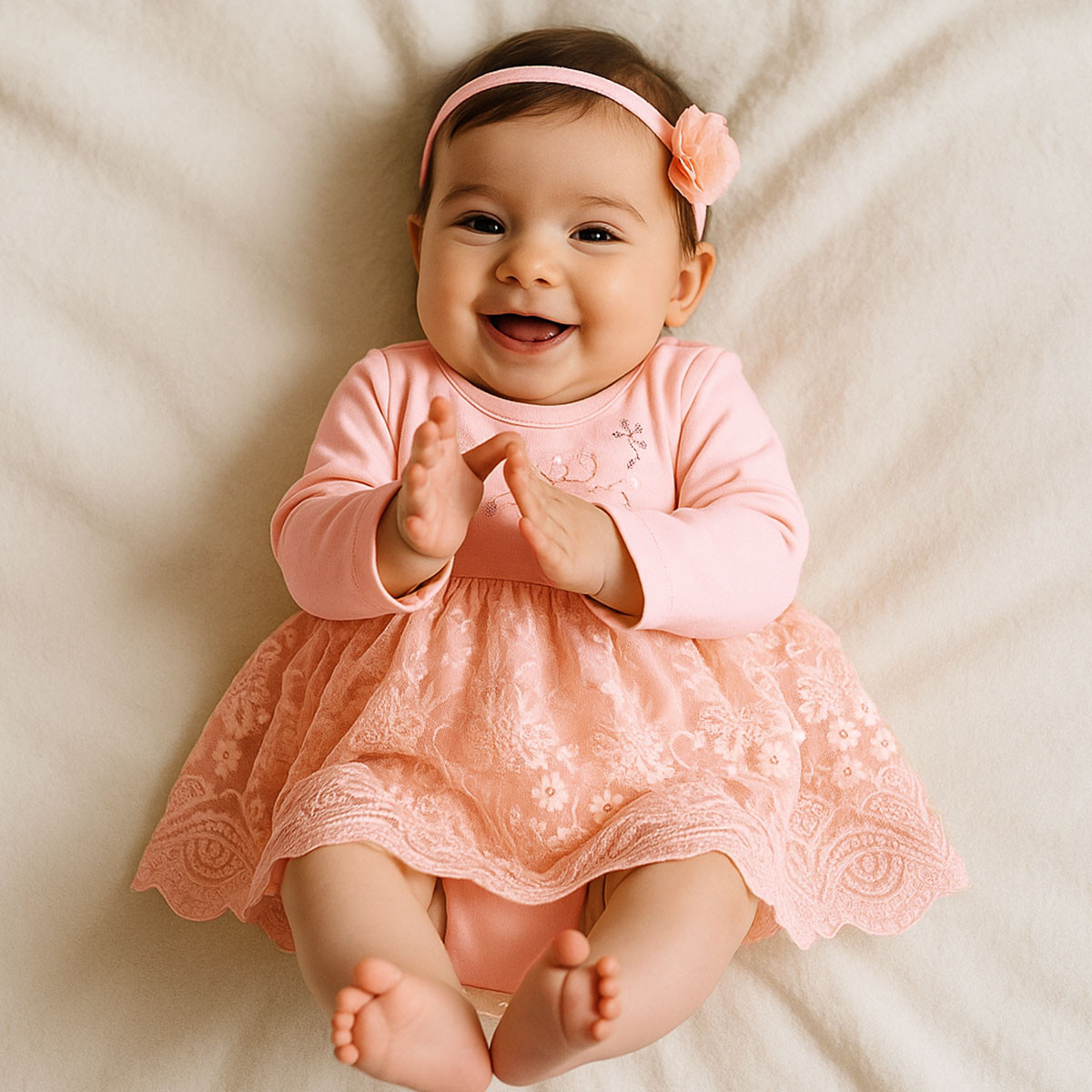 Бебешко боди-рокля с аксесоар в праскова