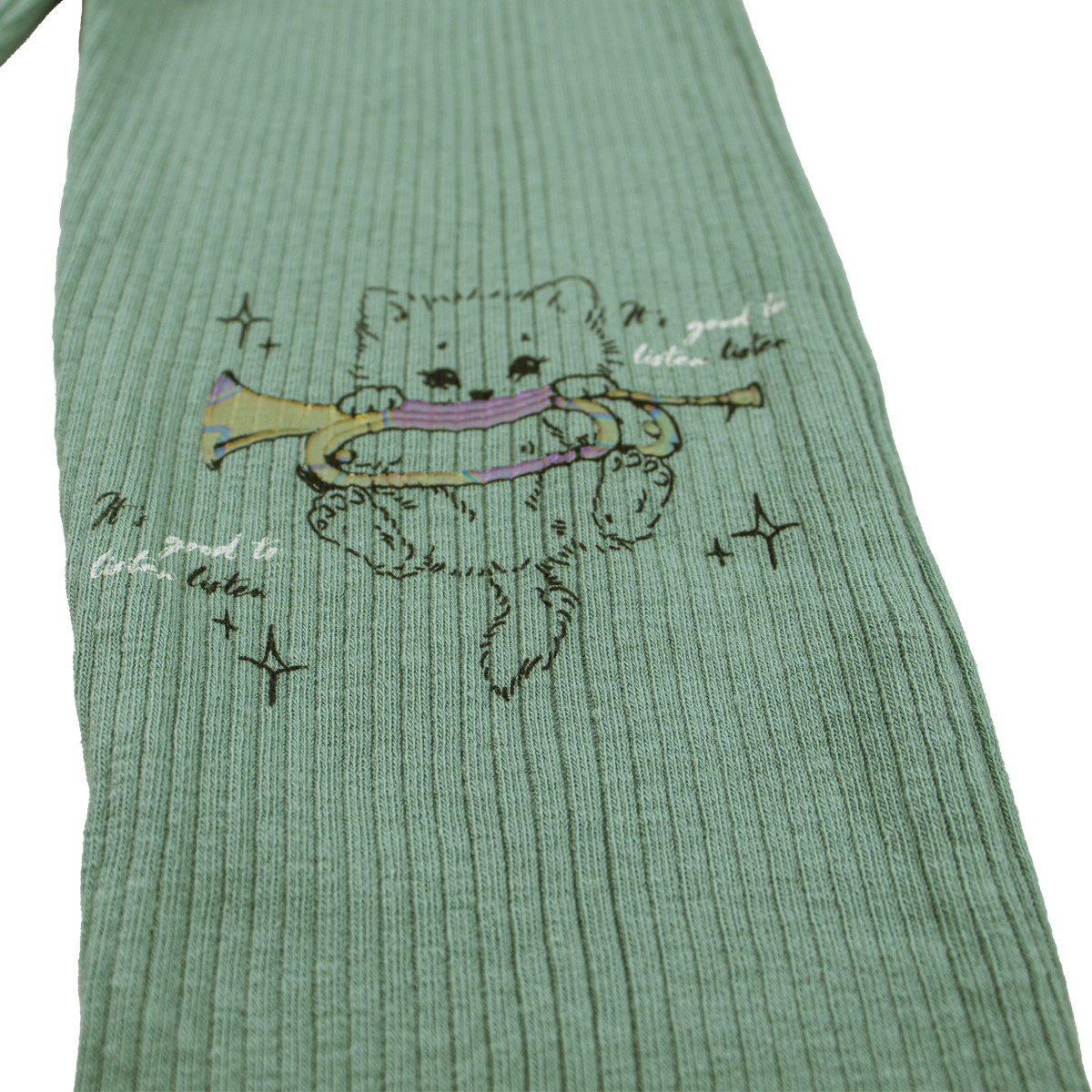 Детски клин от памучен рипс "Котенца" в зелено