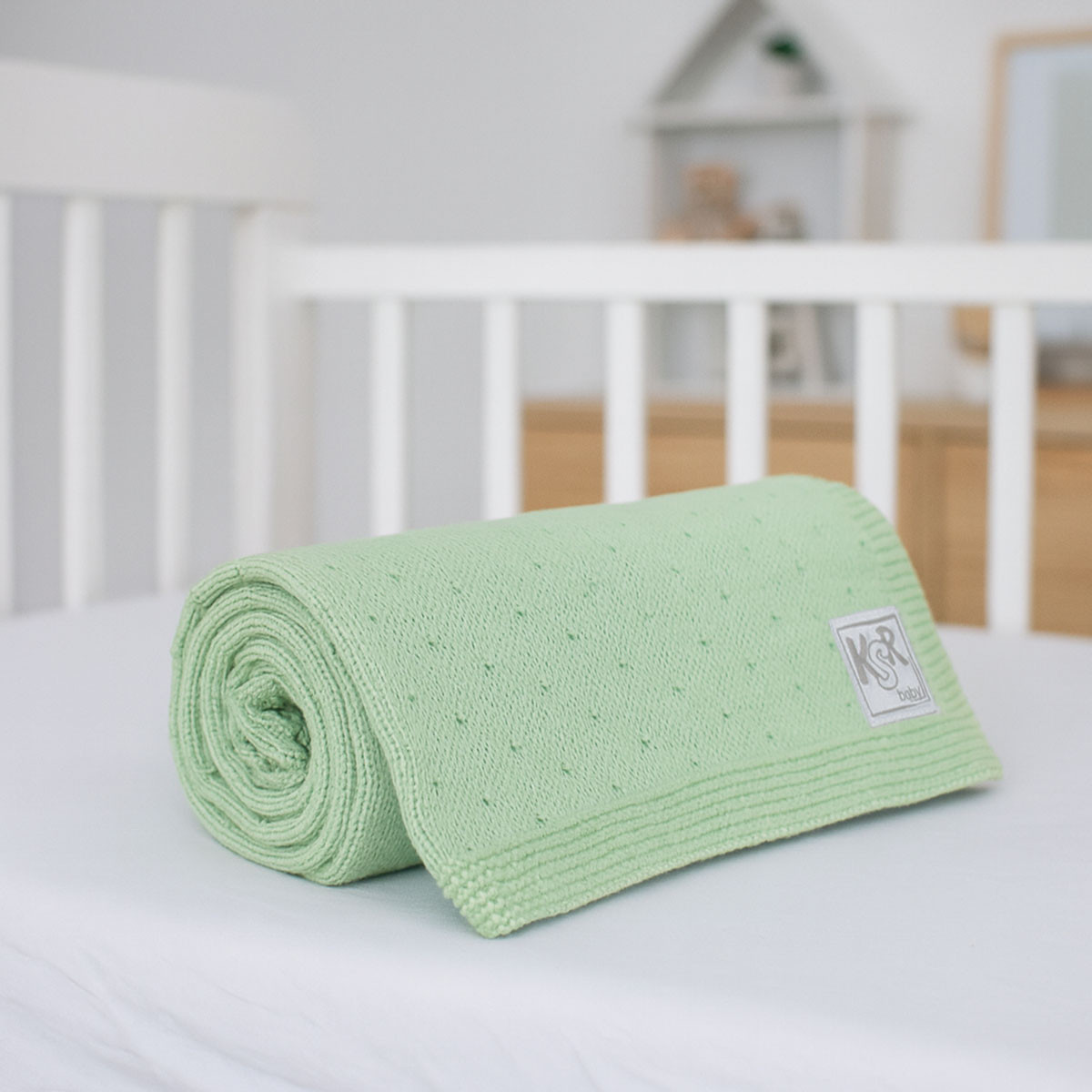 Плетена бебешка пелена от вълнена смес в зелено 80 х 80
