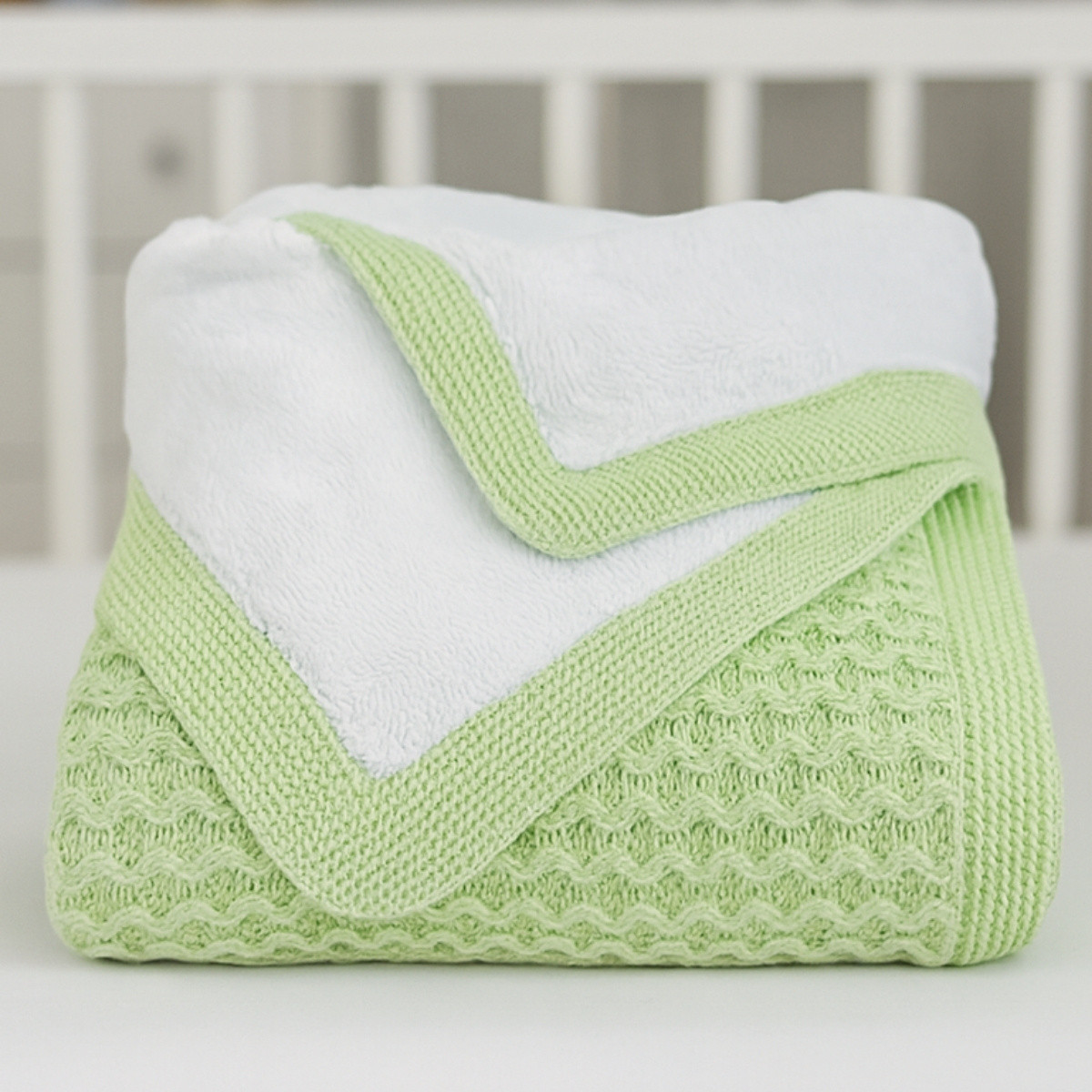 - Топло и меко на допир плетено одеяло за бебешка кошара или количка.