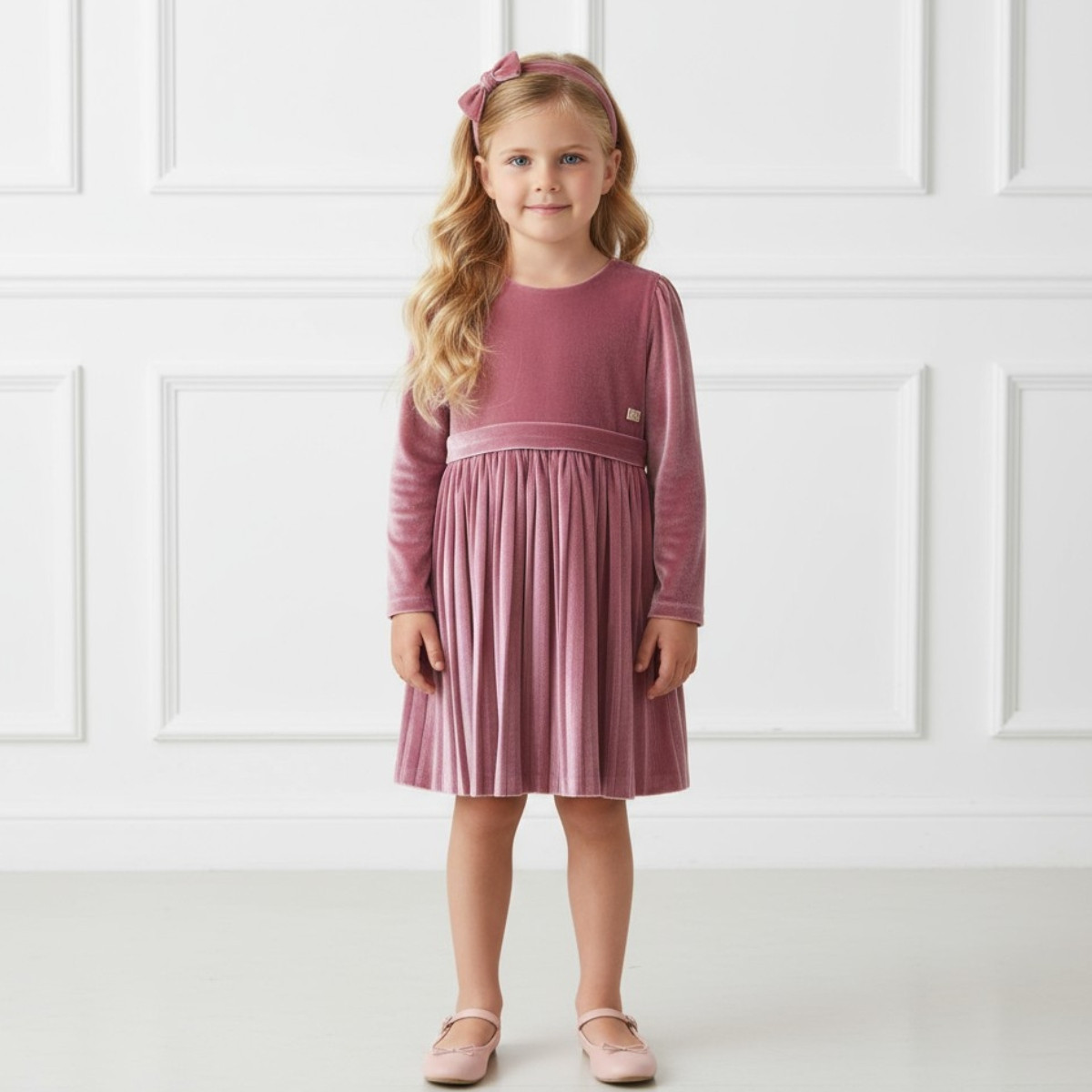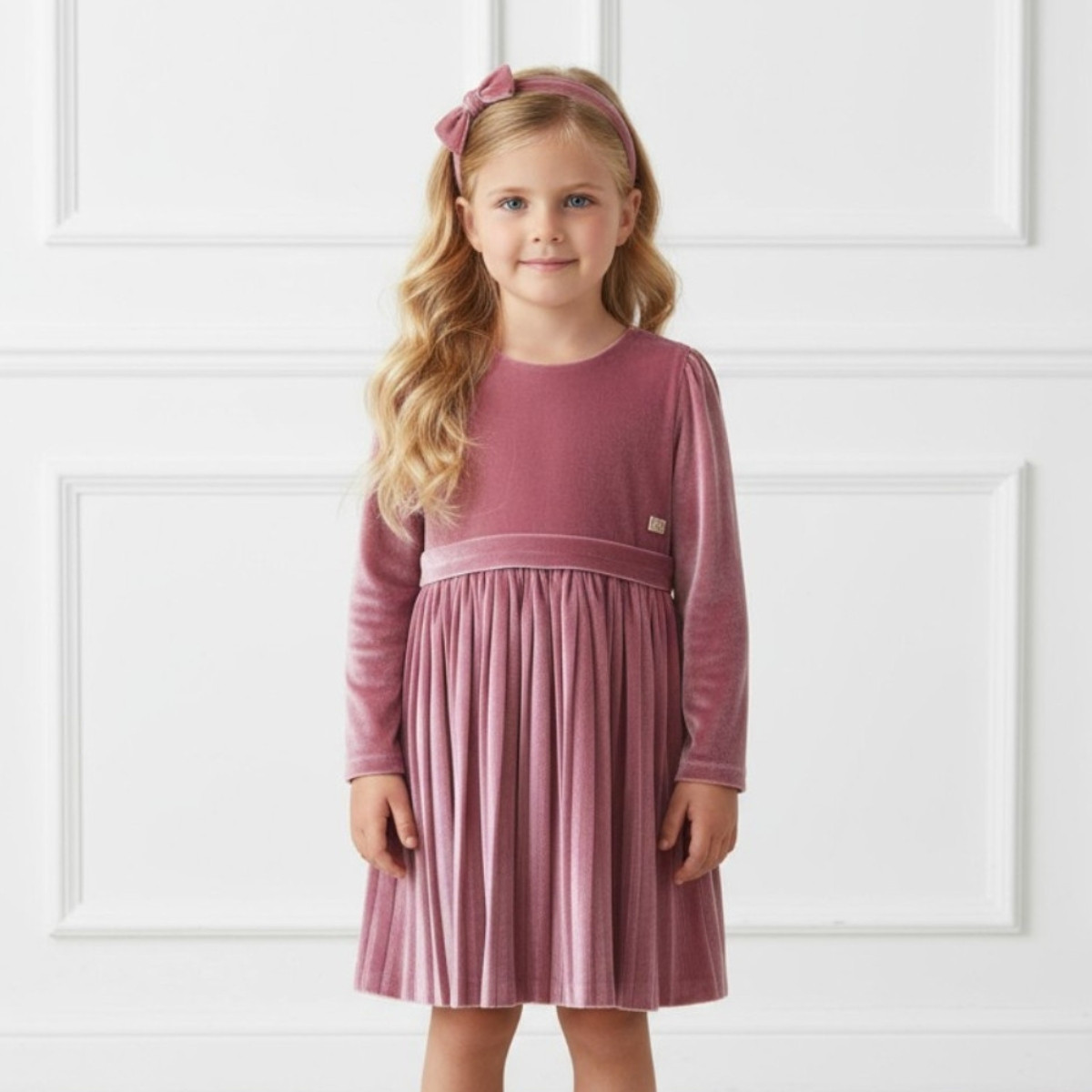 Детска рокля от кадифе с лента за глава