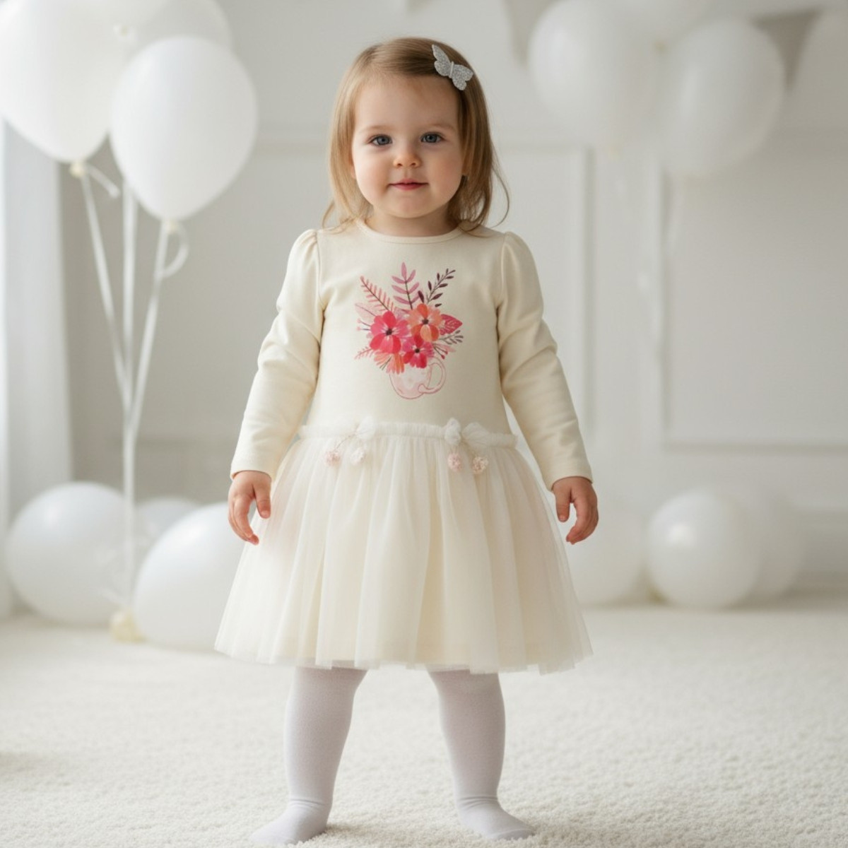 • Горната част е с щампирана картинка, а долната с пришит пласт нежен тюл.