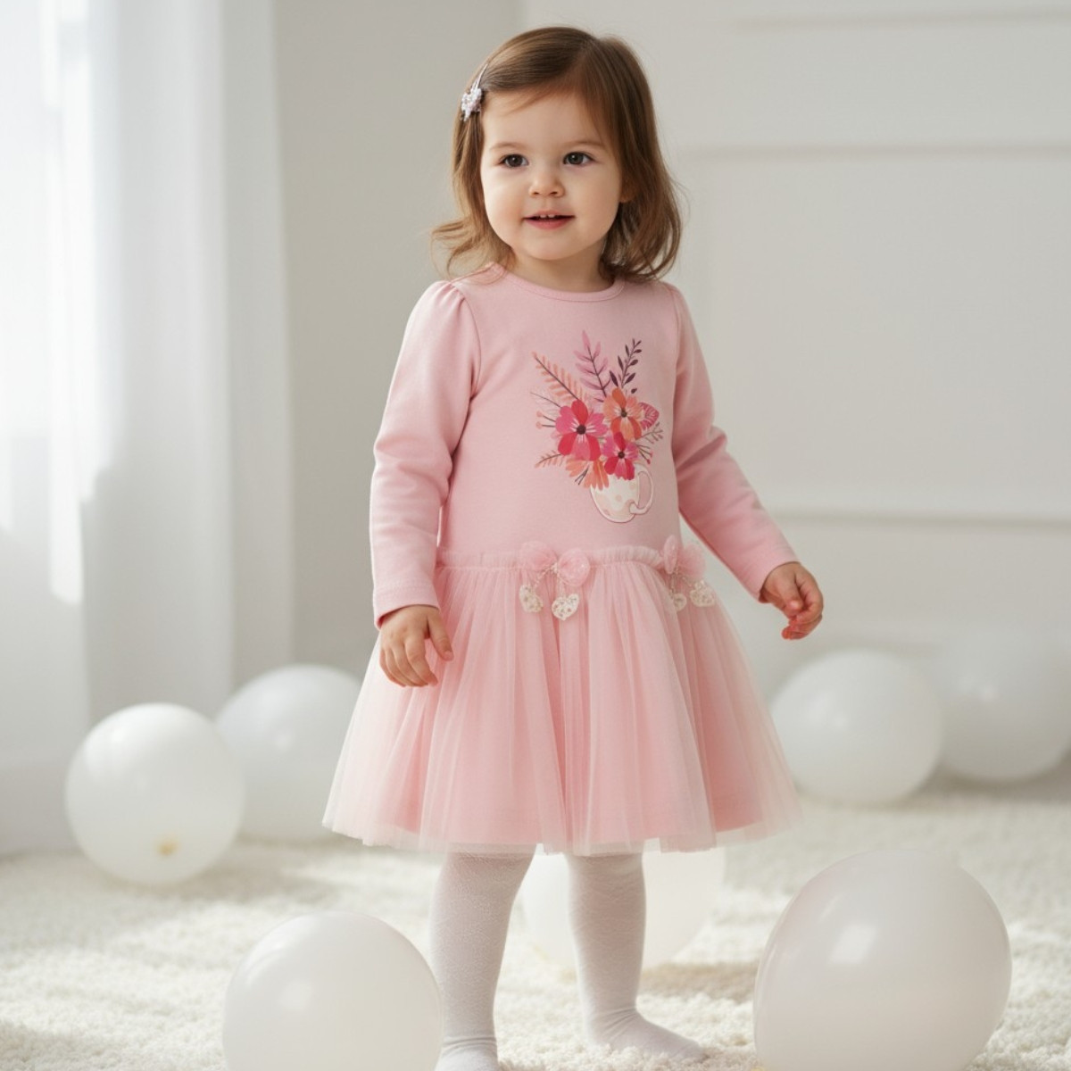 - Горната част е с щампирана картинка, а долната с пришит пласт нежен тюл.