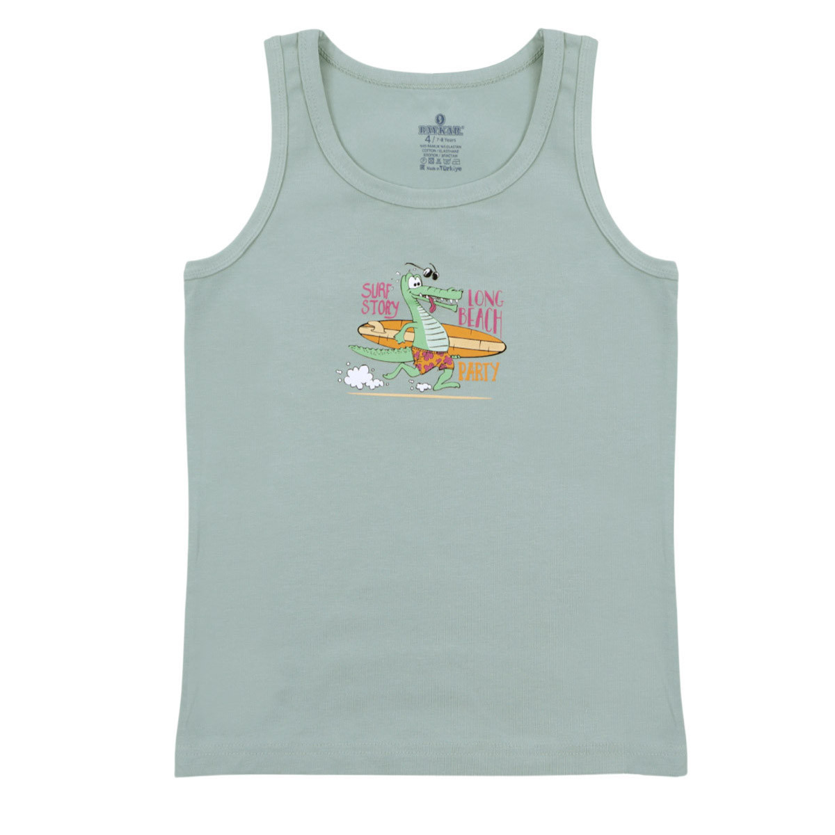 Детски памучен потник в бледозелено ''Surf story''