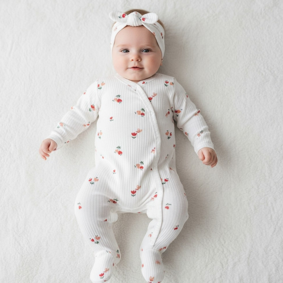 Бебешки ромпър на цветчета с аксесоар