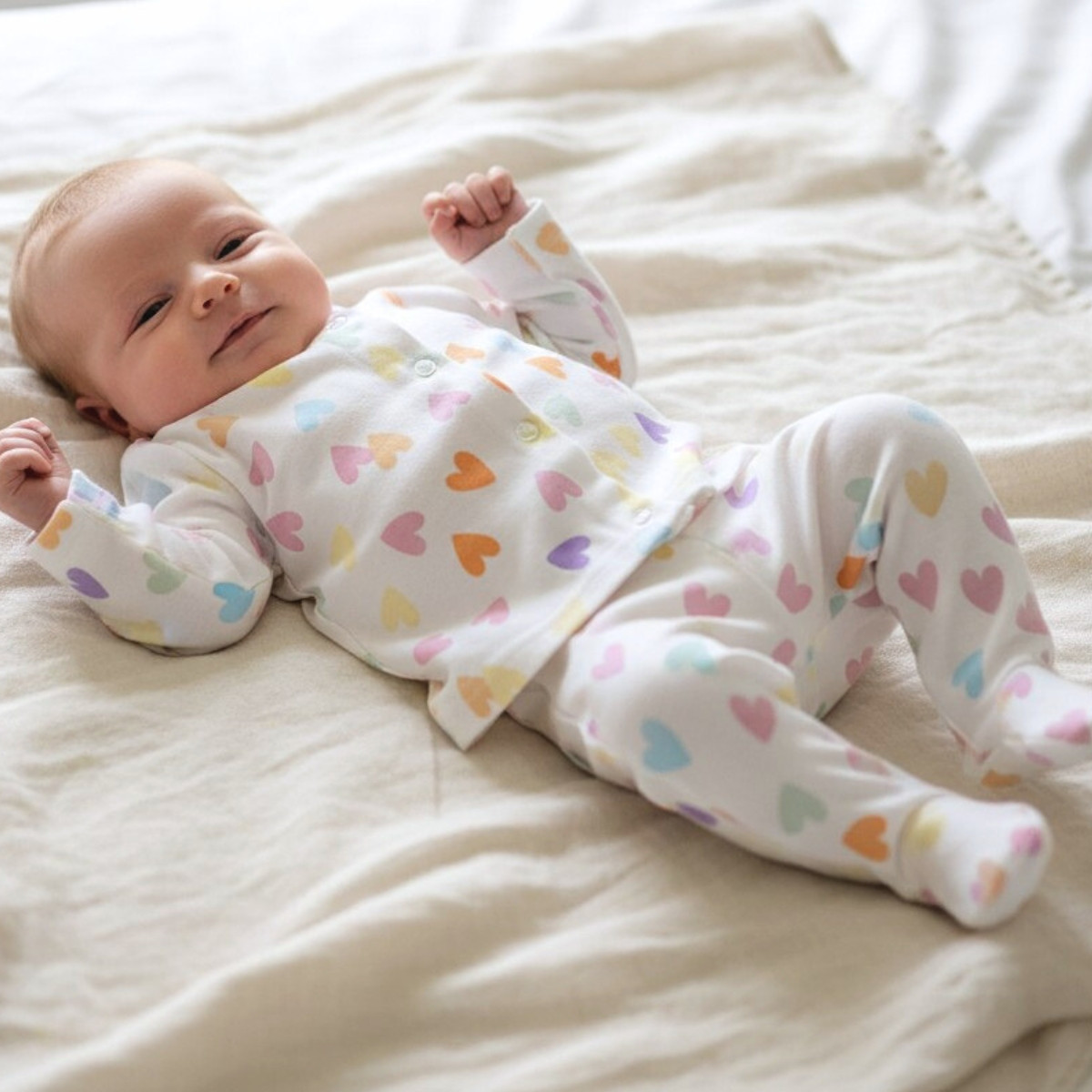 - Цвят: екрю, обсипан с цветни сърчица.