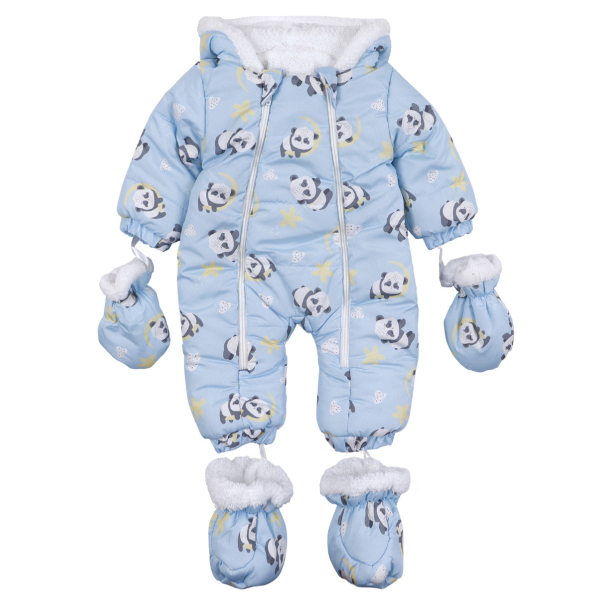 Бебешки ескимос с ръкавички и терлички ''Панда'' в синьо