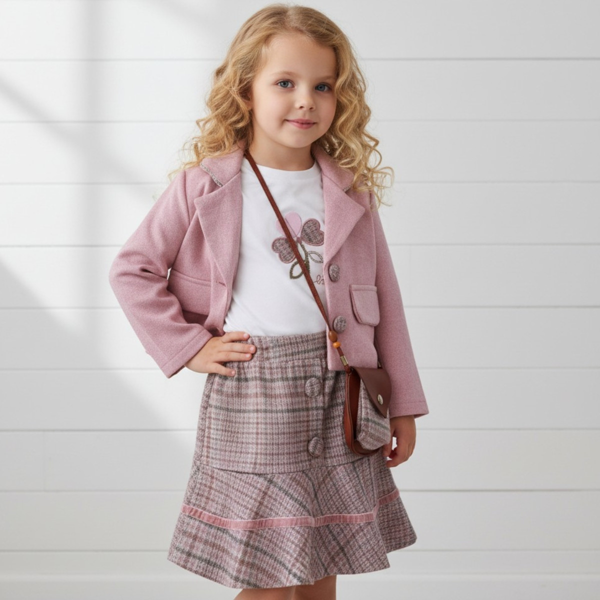 - Сакото е в опушено розово от плътен леко замъшен плат , с 2 капачета, имитация на джобчета.