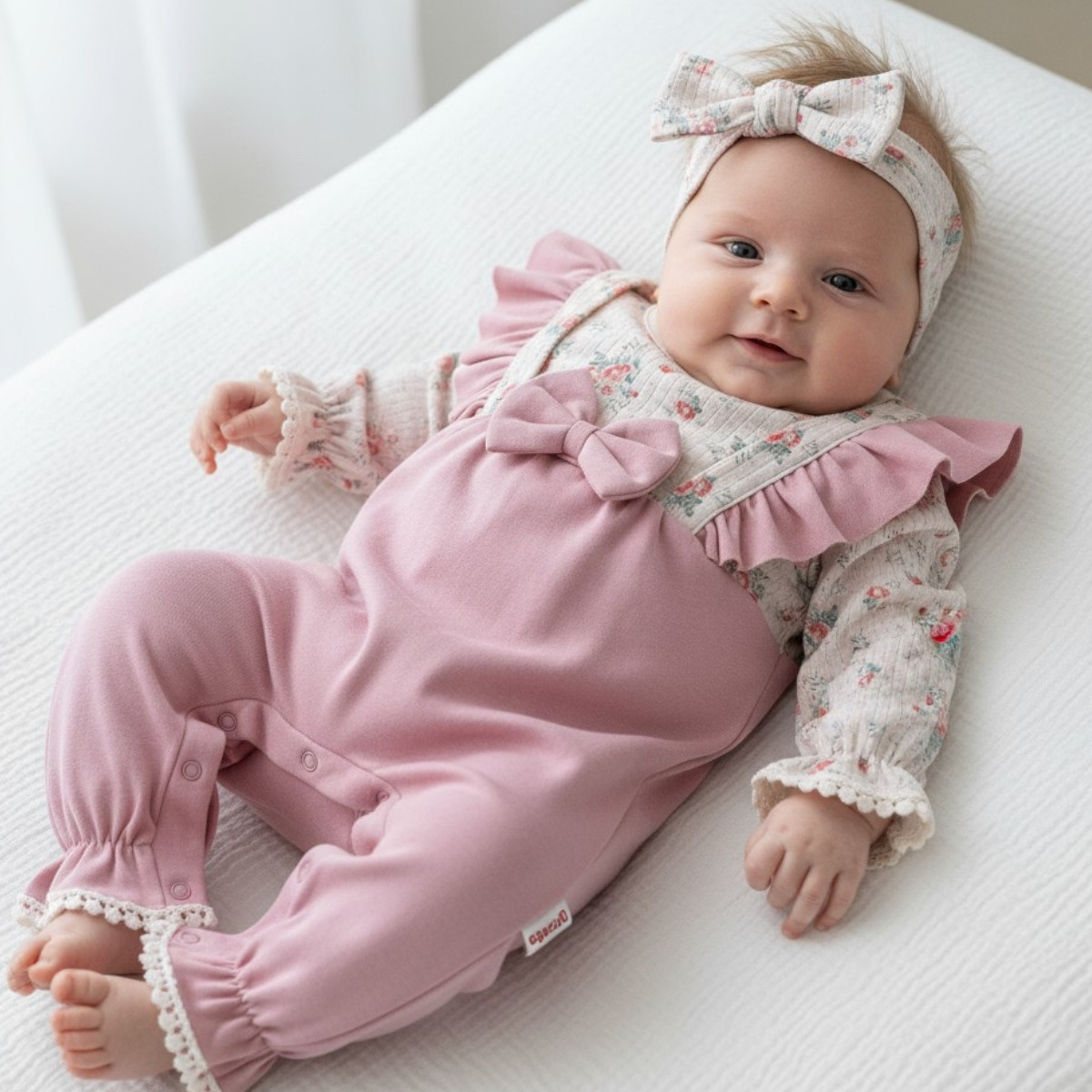- Ръкавите и крачолите завършват с деликатна памучна дантела.