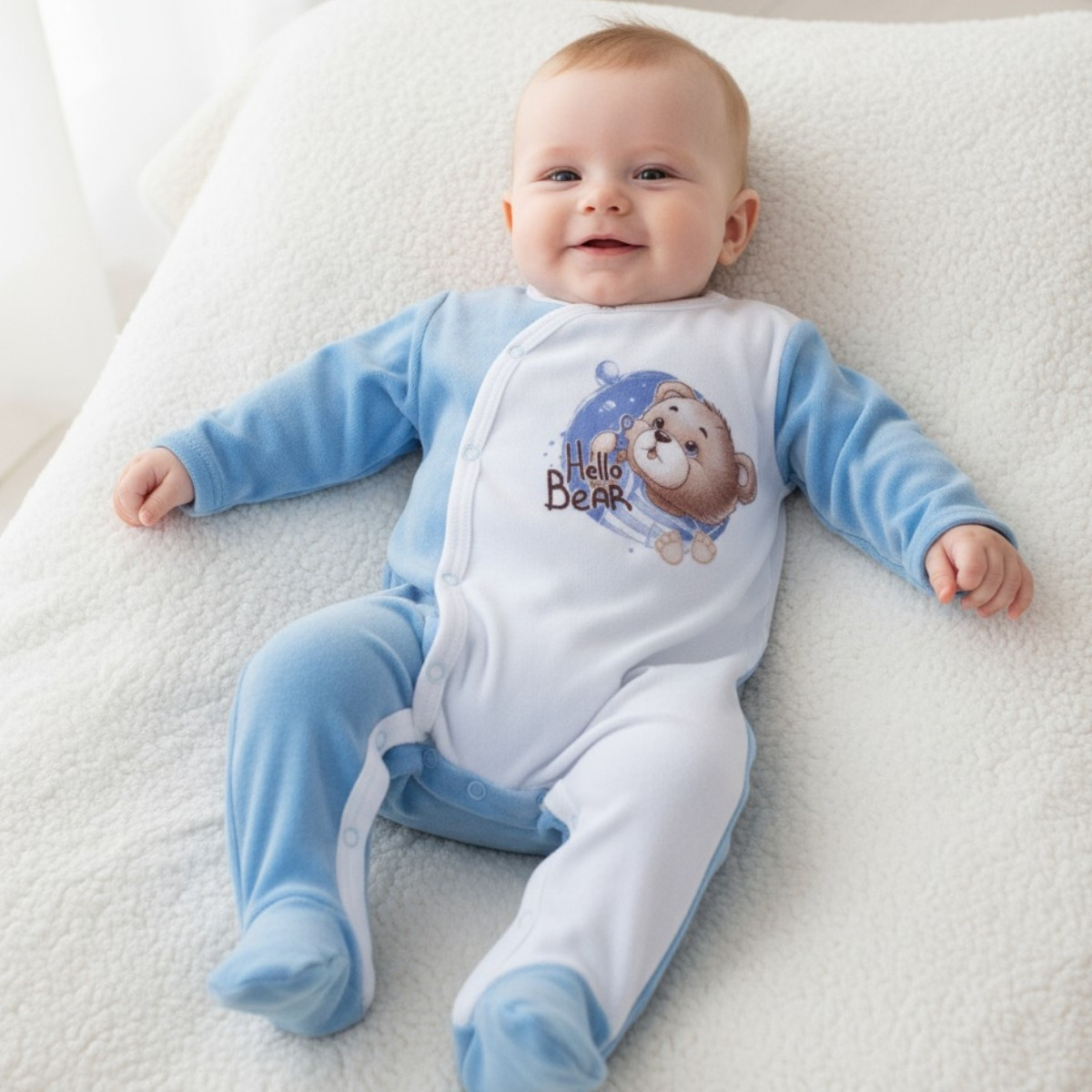 Бебешки плюшен ромпър ''Hello'' в синьо