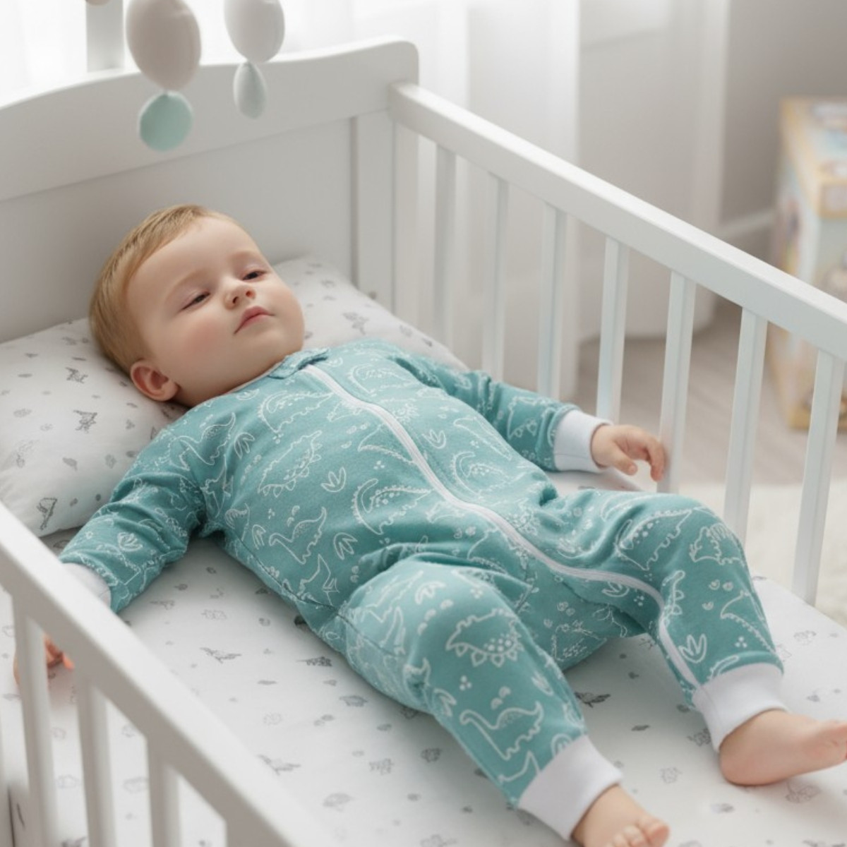 • Цвят: пастелно зелен, обсипан с картинки.