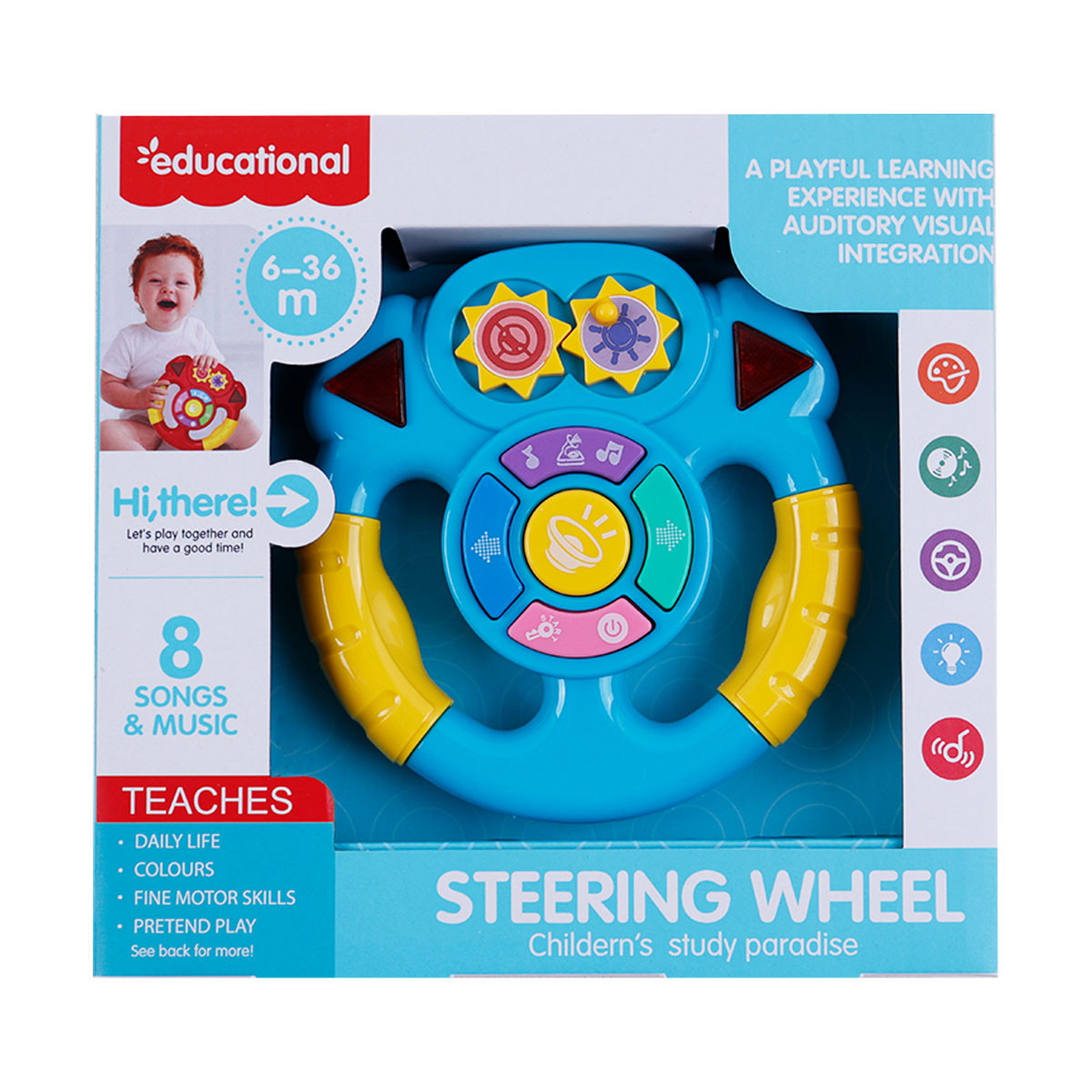 - Играчката е с бутони, които активират светлини и мелодии.
