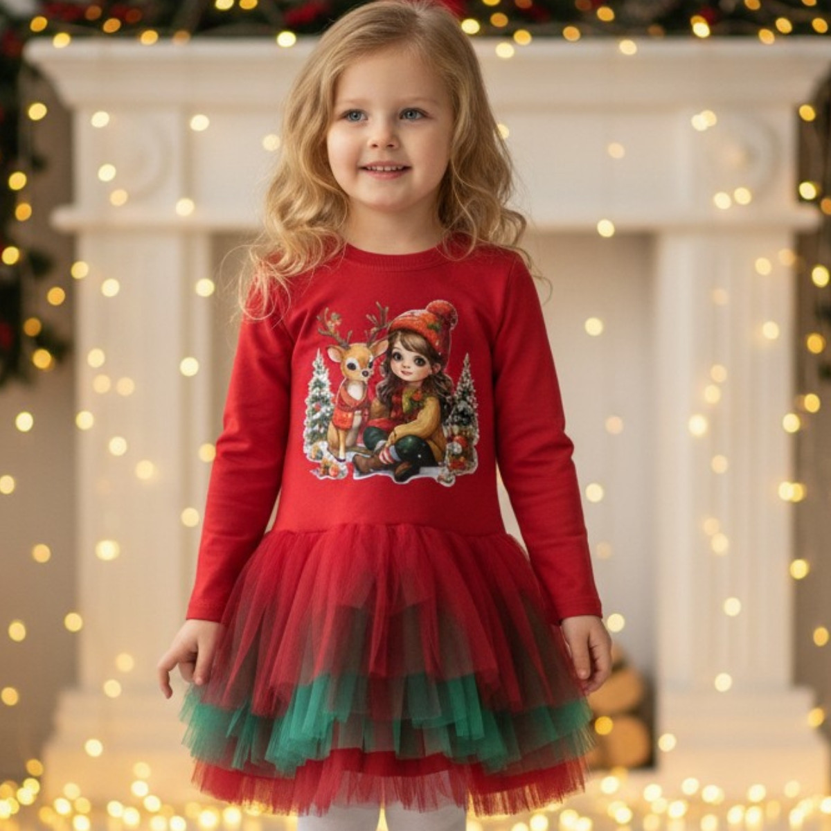 - От долната част се спускат няколко пласта червен и зелен тюл за по-голям обем.