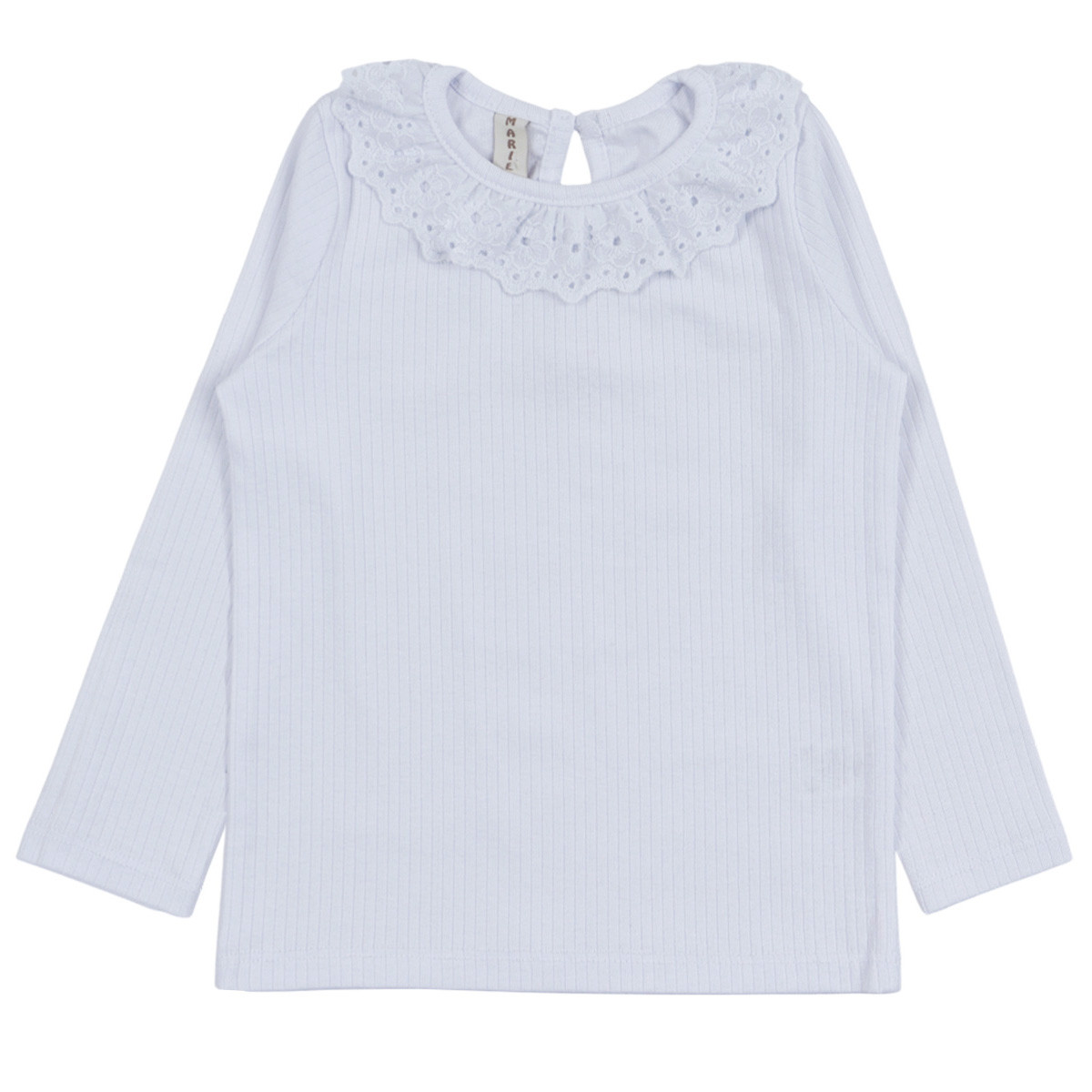 • Блузата е от памучна, рипсена материя в бял цвят.