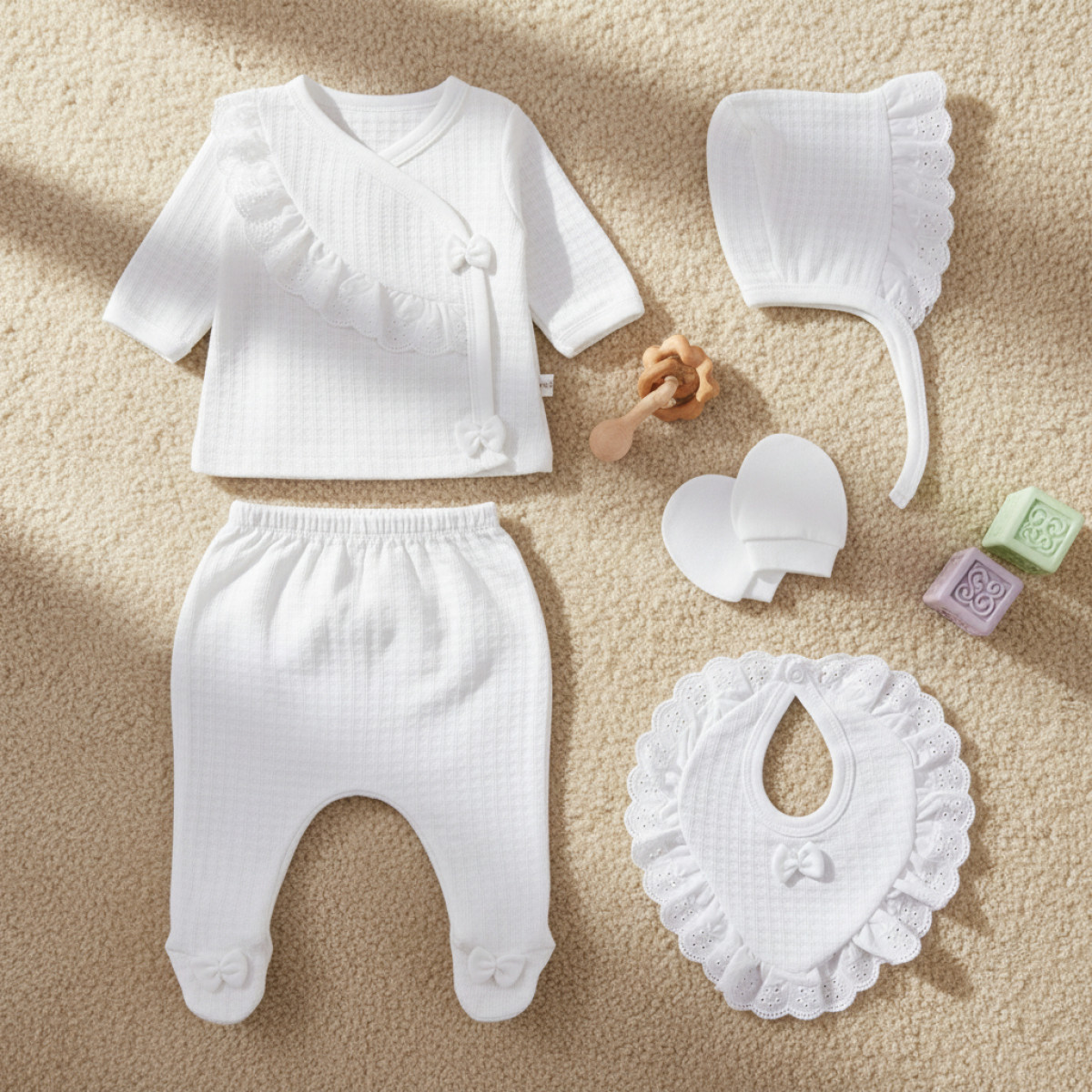Бебешки комплект от 5 части с панделки в бяло
