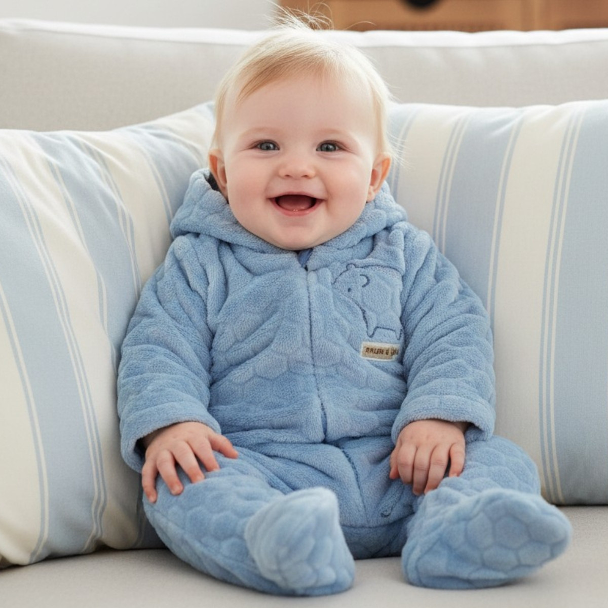 Бебешки плюшен ромпър с цип в синьо