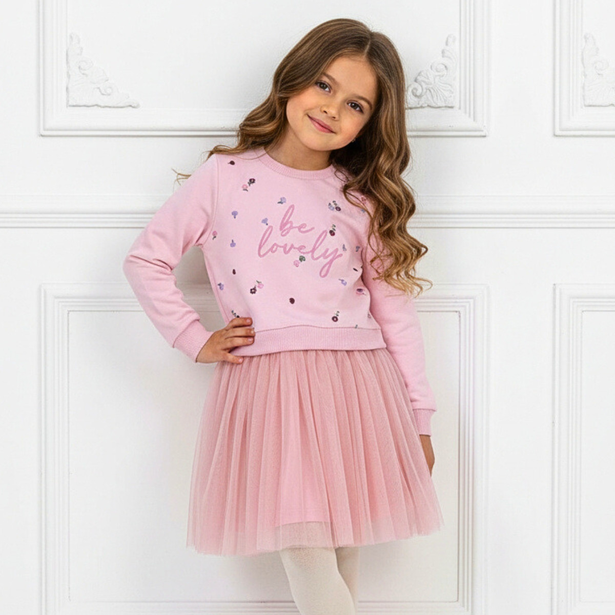Детска плътна рокля "Be lovely" в розово