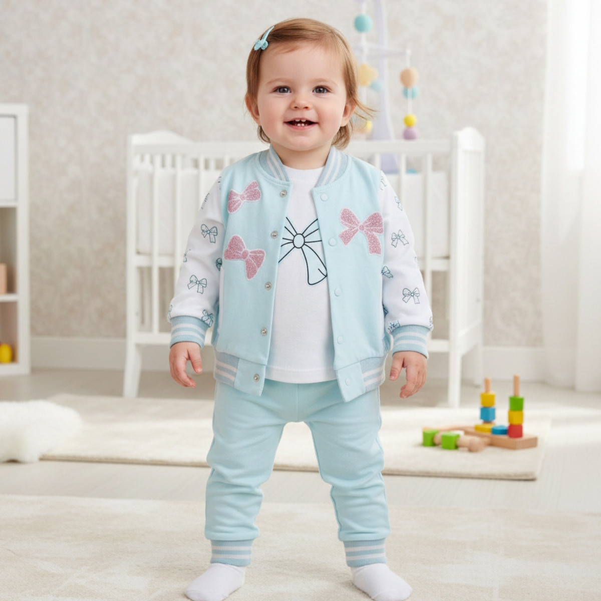 - Комплектът се състои от: суитчър, блуза с дълъг ръкав и долнище.