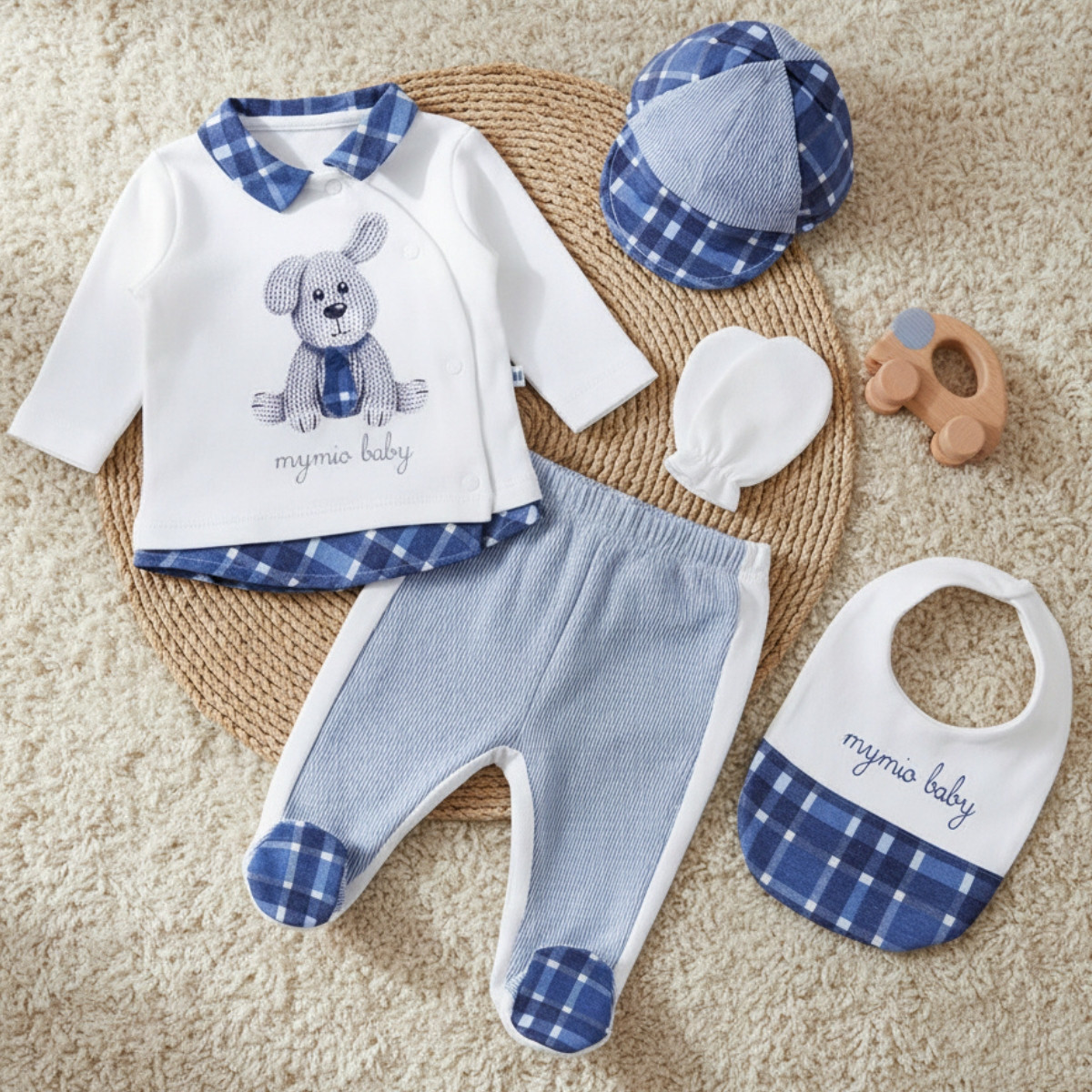 Бебешки комплект от 5 части ''Mr. Baby'' със синьо каре