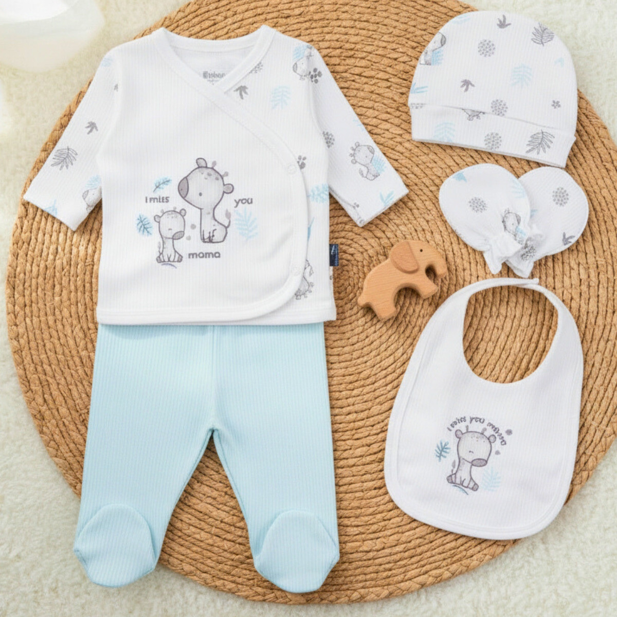 Бебешки комплект от 5 части ''Little giraffe'' в екрю и синьо