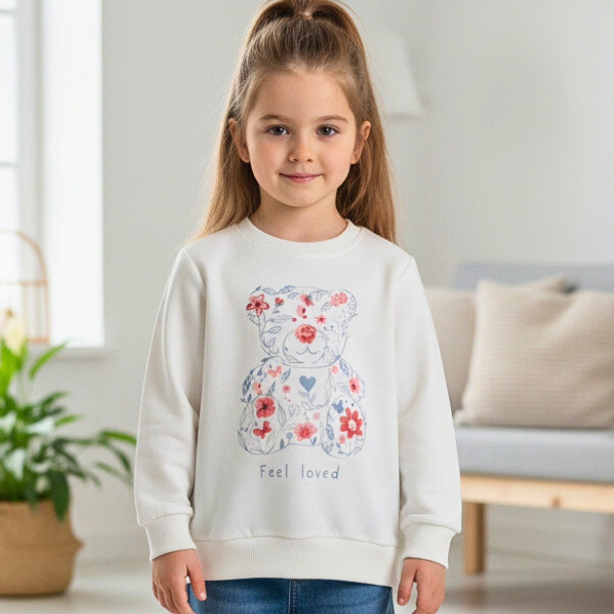Детска плътна блуза ''Feel love'' в екрю