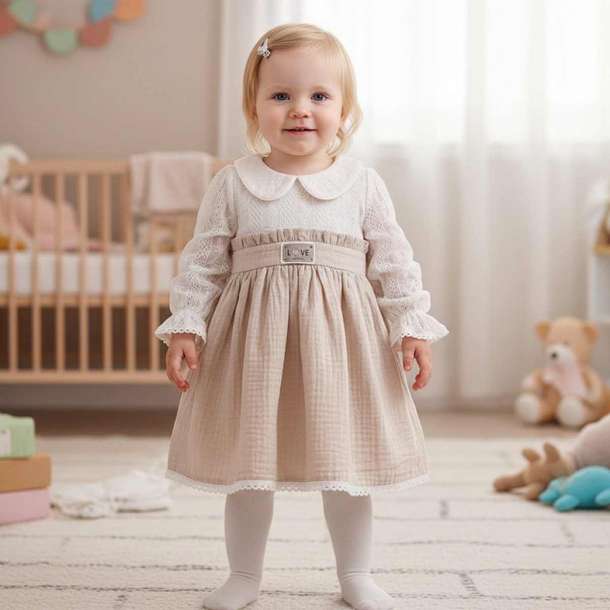 Детска рокля "Love" в крем и бежово